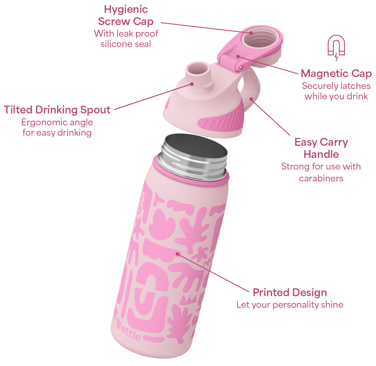 • Leak proof magnetic twist cap lid