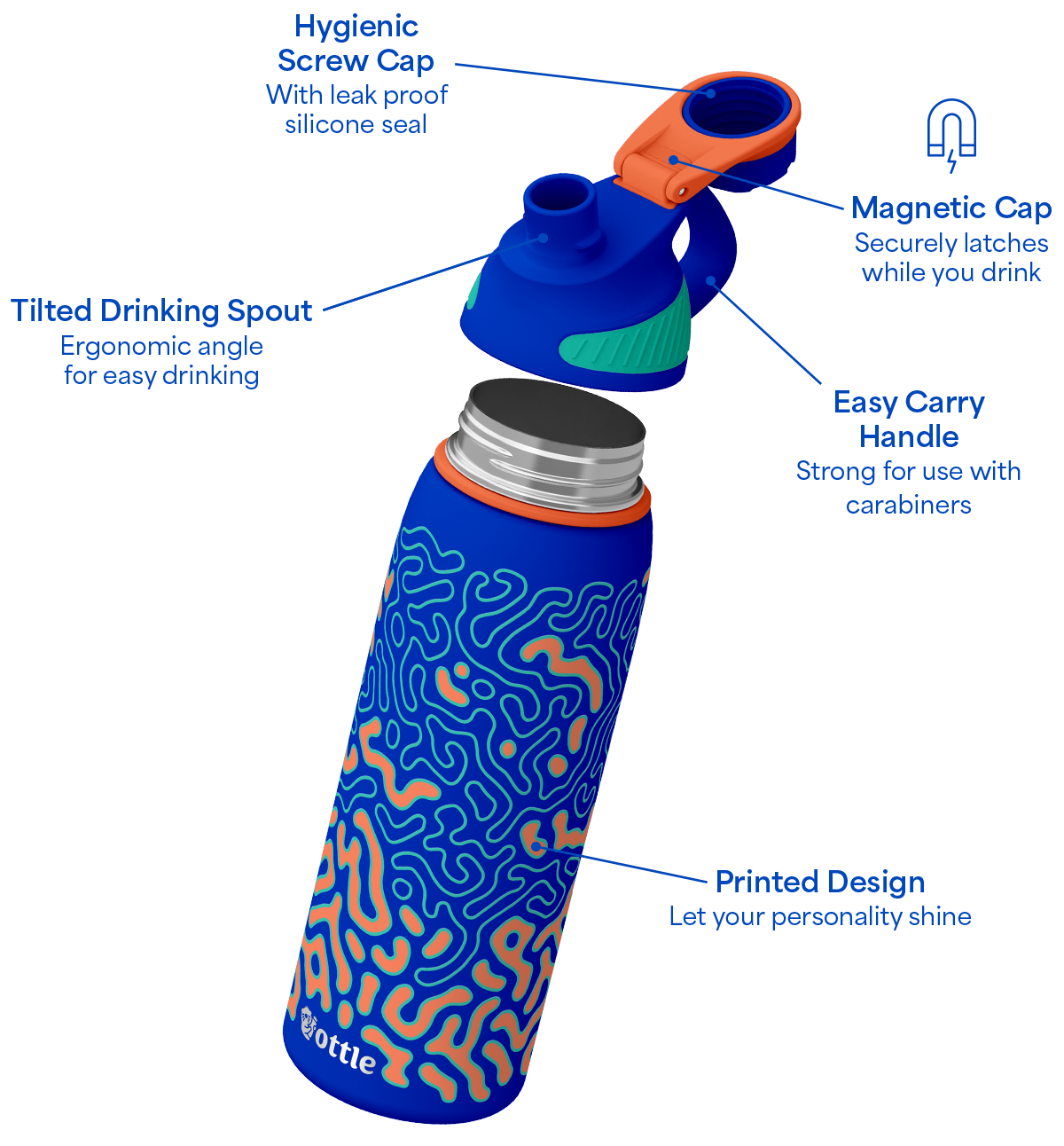 Dishwashing may cause gradual degradation of the printed design over time. To maintain the "like new" look and preserve the Reef Roamer 27 oz water bottle’s function, we recommend handwashing.