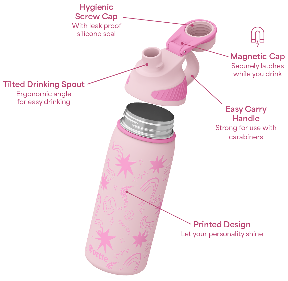 • Leak proof magnetic twist cap lid